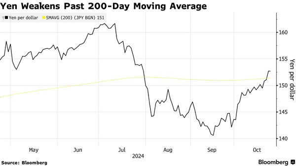 日元跌势导致美元/日元突破关键的200日移动均线151.38,分析师称这为该货币对进一步上涨打开大门。