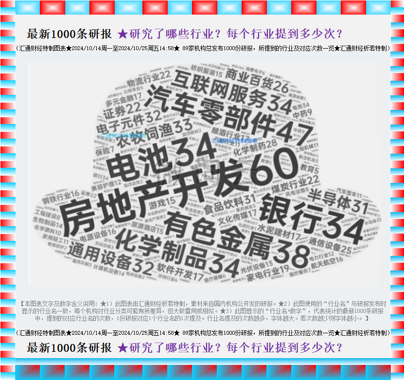 标题:图解“大数据看A股研报”:89家机构1000份研报多角度展示(241025版)