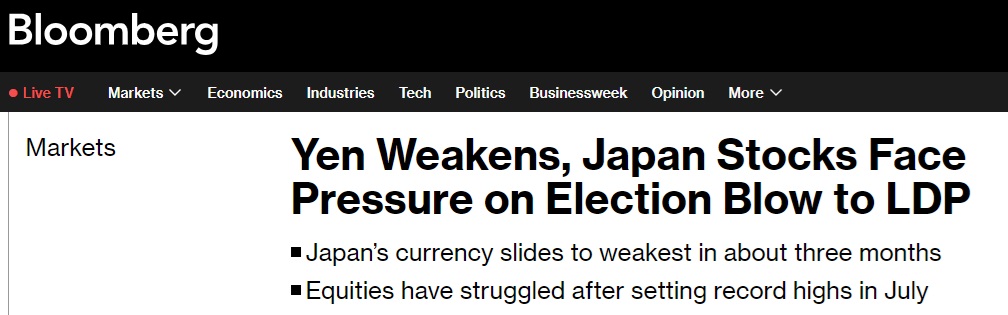 KCM Trade驻悉尼首席市场分析师Tim Waterer表示:“选举结果可能会使立法程序陷入困境,至少在短期内,这对日元和日经指数来说可能不是好兆头。”