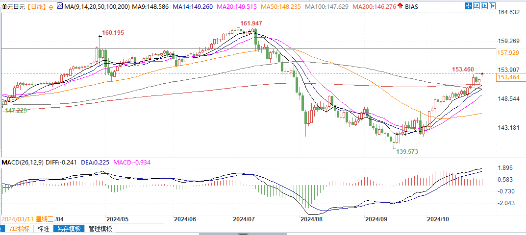 美元兑日元上周一度触及153.34的高位,但此后跌至 151.98。