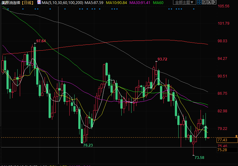 美原油现报77.43美元/桶。