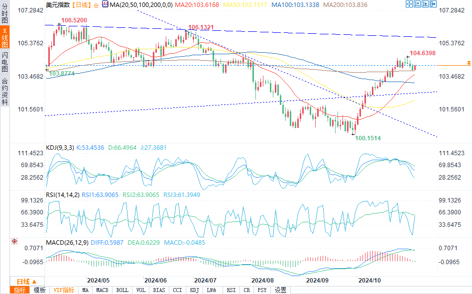 美元指数在104.05美元的轴心附近,如果行情走弱,保持在该水平下方表明看跌趋势,即刻支撑位在103.85美元和103.73美元。