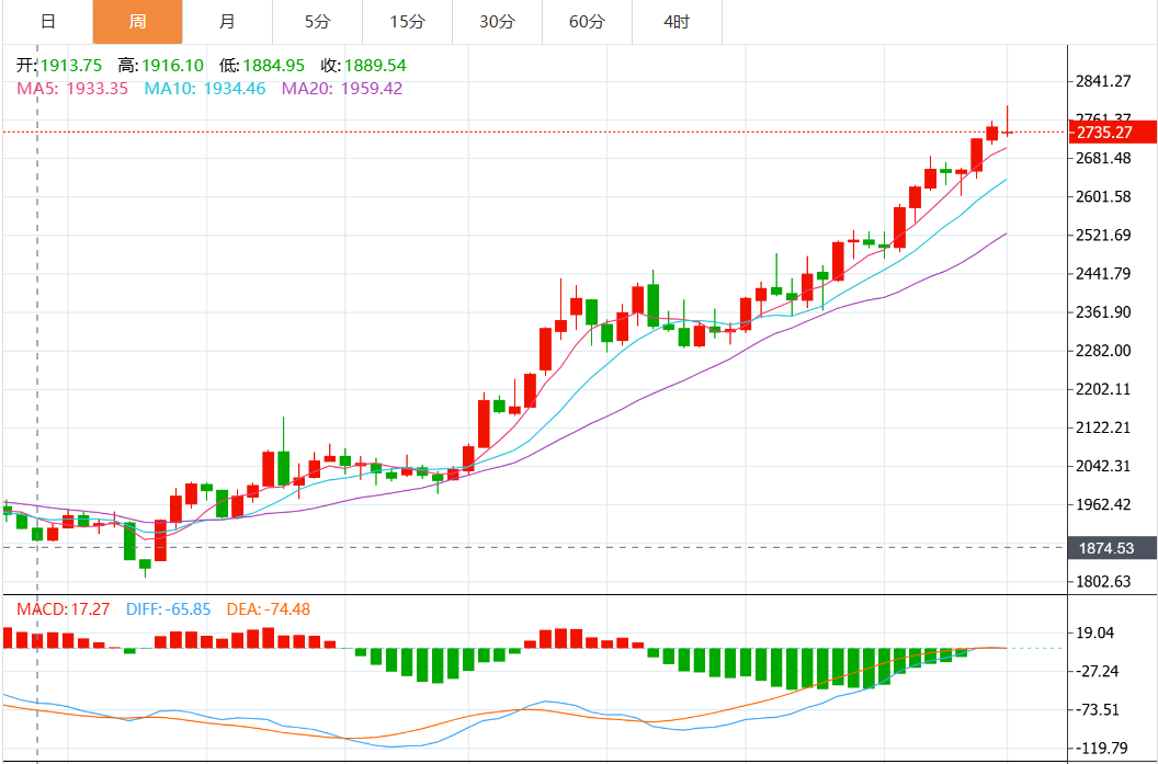 现货黄金报2,736.28美元,下降了0.2%,而美国期金则基本持稳于2,749.2美元附近。本周的高点不仅标志了投资者对黄金的信心,同时也反映出避险需求的不断增加。