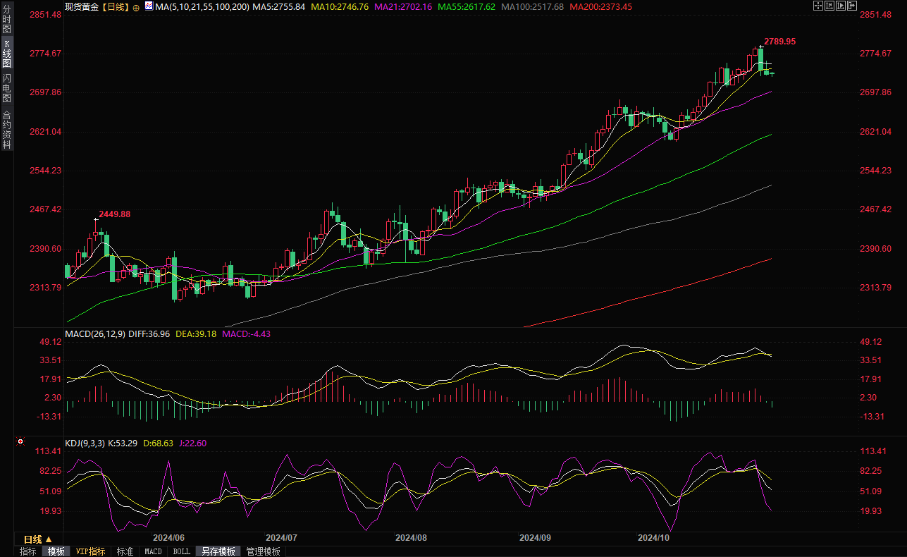 现货黄金窄幅震荡,守在2730关口上方,目前交投于2739.28美元/盎司附近。金价上周五下跌0.3%,收报2735美元附近,受美元走强和国债收益率走高的打压,而且金价在创下2789.95美元的历史新高后部分多头获利了结,但全球最大经济体就业增长数据疲软,促使分析师加大了对美联储降息的押注,从而限制了部分跌幅。
