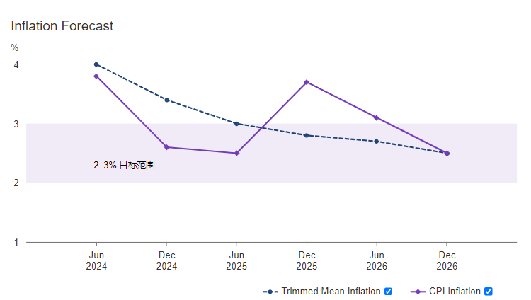 到 2026 年底,通货膨胀率预计将达到 2.5%澳洲联储预计,随着经济需求与供应恢复一致,潜在通胀将缓慢缓解。虽然预计明年上半年整体通胀将在目标范围内,但部分原因是生活成本暂时缓解。