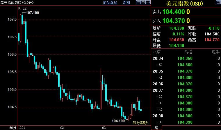 美元指数下跌0.10%至104.394。