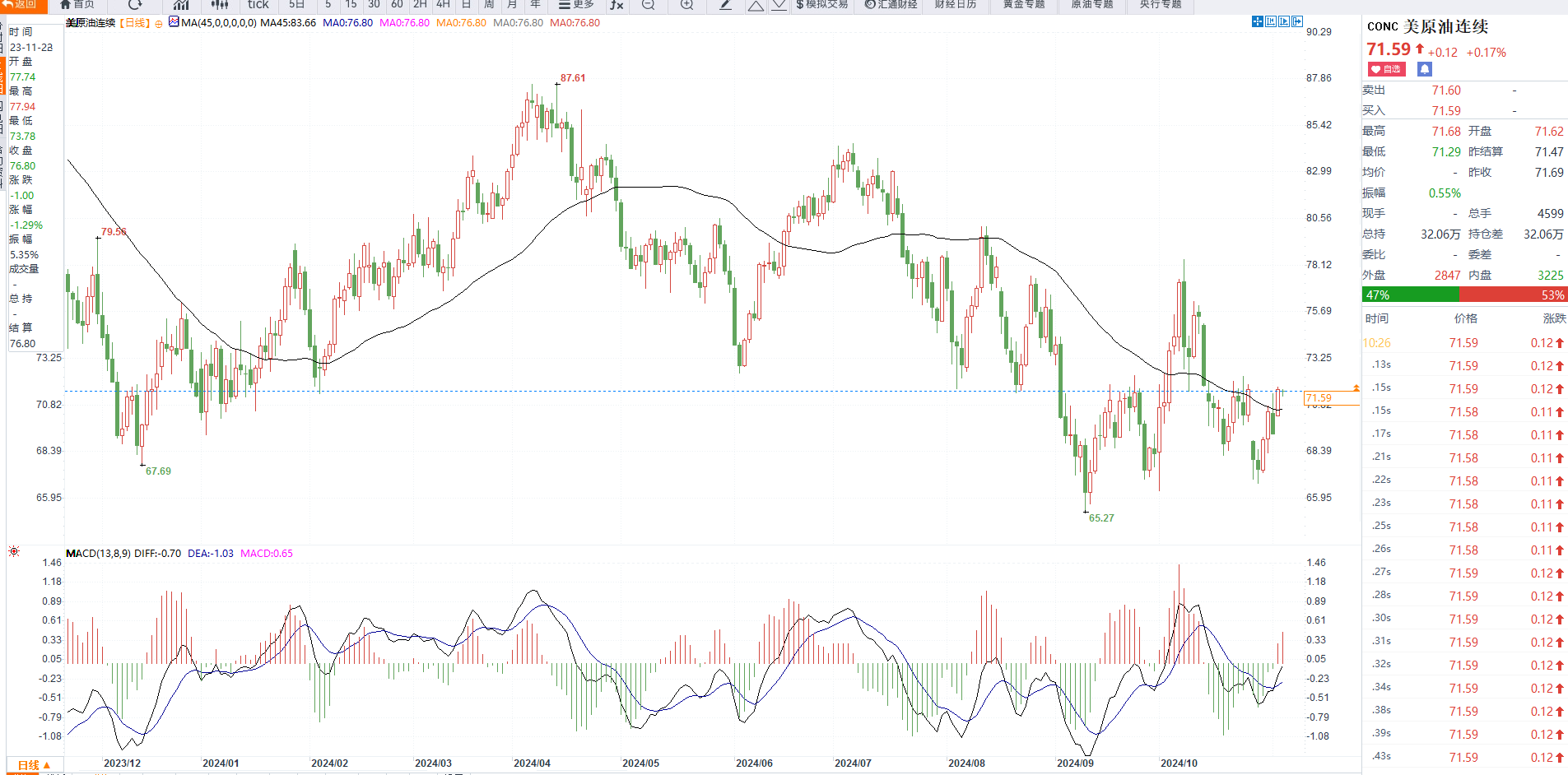 美原油现报71.53美元/桶。