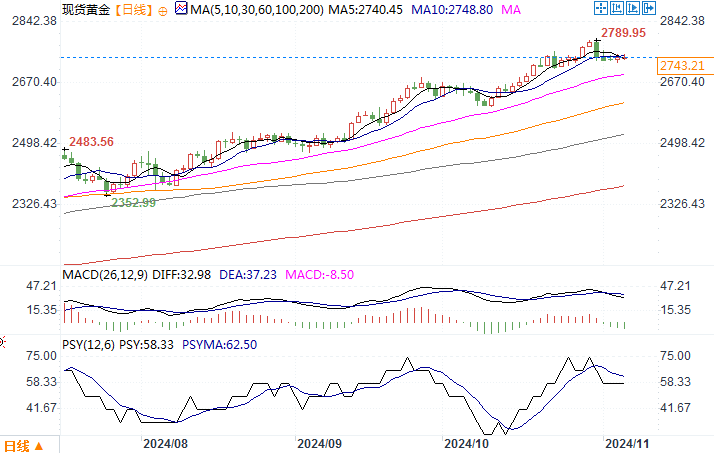 现货黄金 报 2743.21 美元/盎司