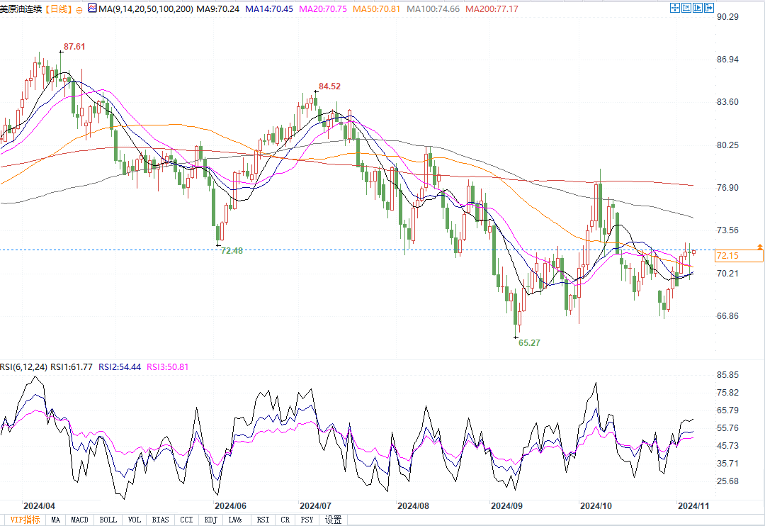 北京时间11月7日10:08,WTI原油价格报72.17美元/桶