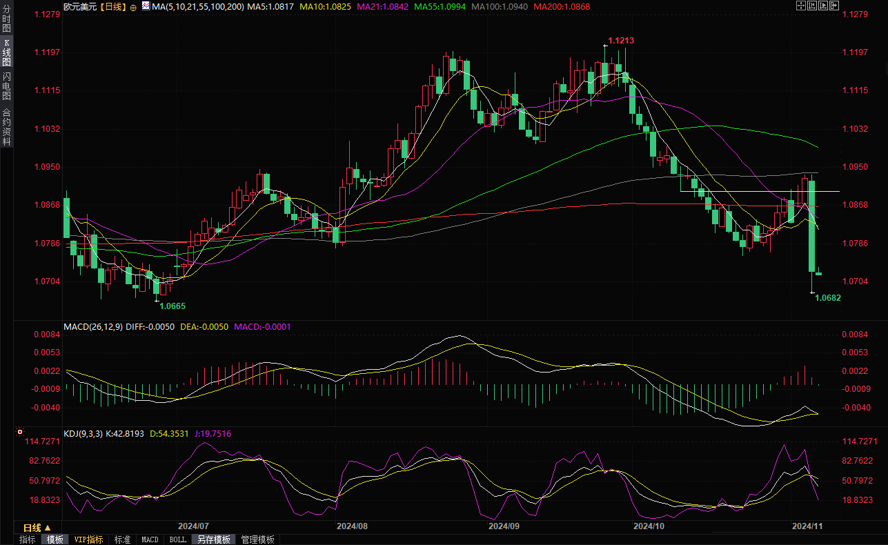 汇通财经APP讯——周四(11月7日)亚市,欧元/美元小幅企稳,目前交投于1.0723附近。欧元上日重挫1.8%,盘中最低触及1.0683美元,为6月27日以来最低,因