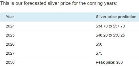 该机构未来几年银价预期如下