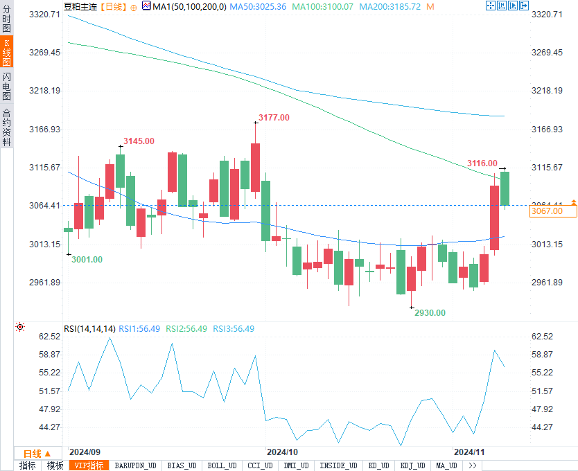 国内豆粕市场则表现出较为稳健的需求支撑,尤其在冬季饲料需求回升的情况下,豆粕价格获得一定支撑。随着油料进口供应忧虑加剧,内盘豆粕价格可能会继续受益于国际基本面的边际回暖。短期内,豆粕价格或将维持震荡上行趋势,需关注未来几周国际油脂市场动态变化。