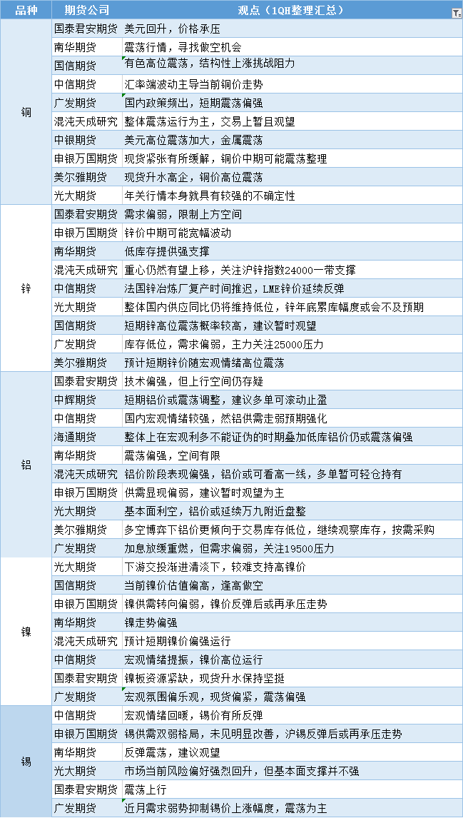 标题:期货公司观点汇总一张图:12月7日有色系(铜、锌、铝、镍、锡等)