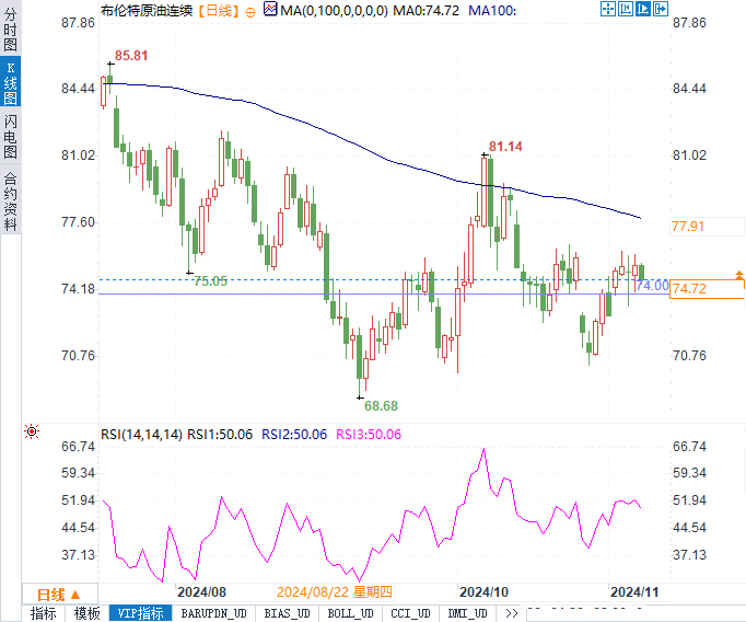 从技术面来看,油价目前处于相对震荡的区间内。