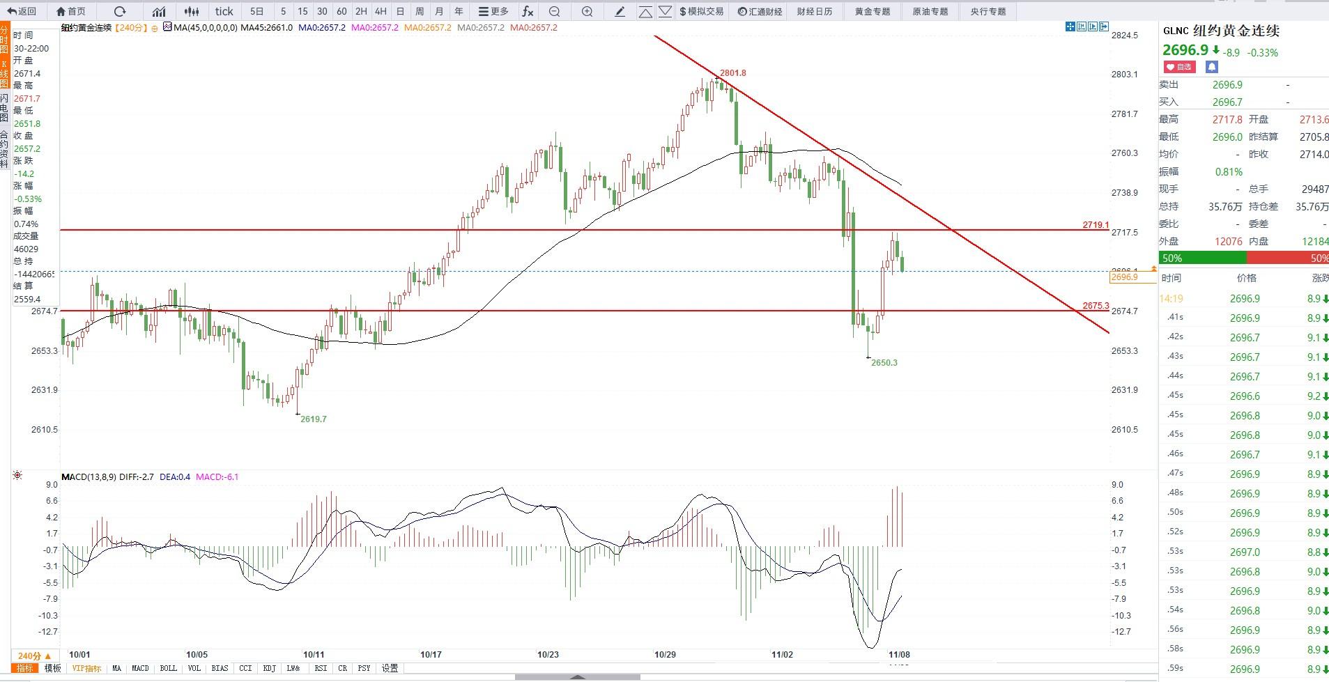 标题:11月8日交易机会之COMEX黄金