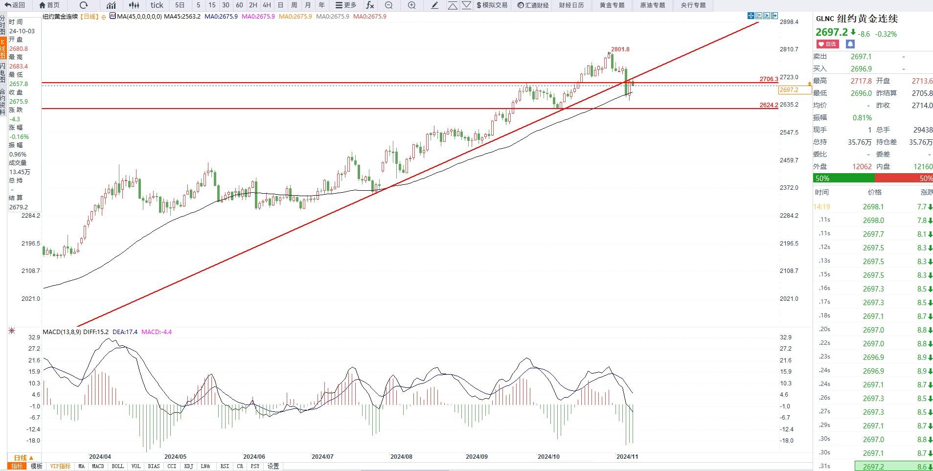 汇通财经APP讯——周五(11月8日)COMEX黄金亚盘尾盘时段,交投于2694.4美元附近,符合昨日前瞻,超跌反弹的需求依然是当前金价反弹的主要原因。