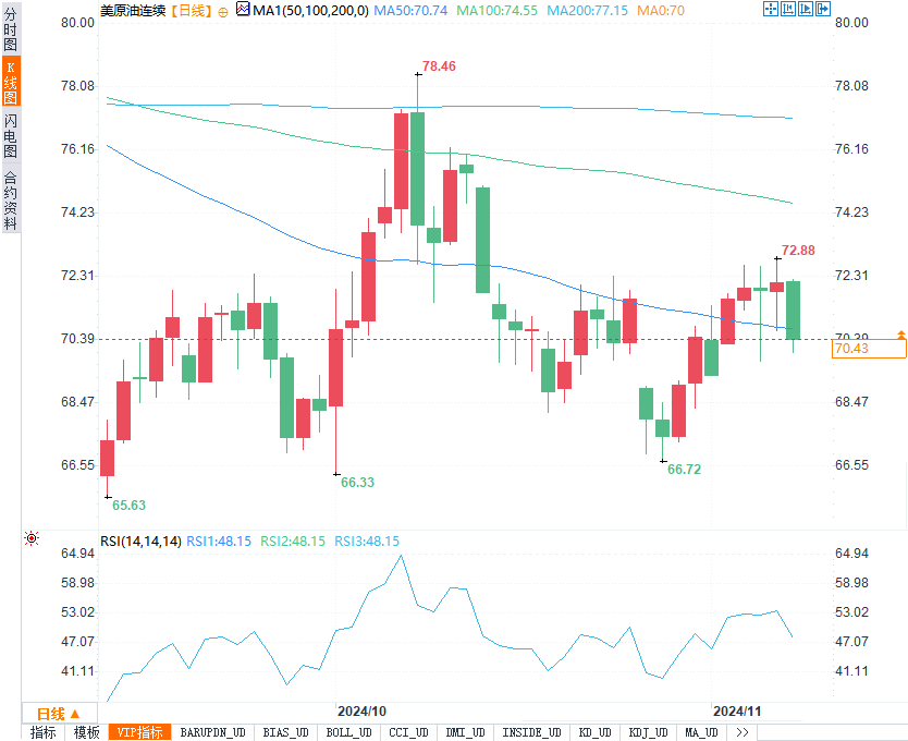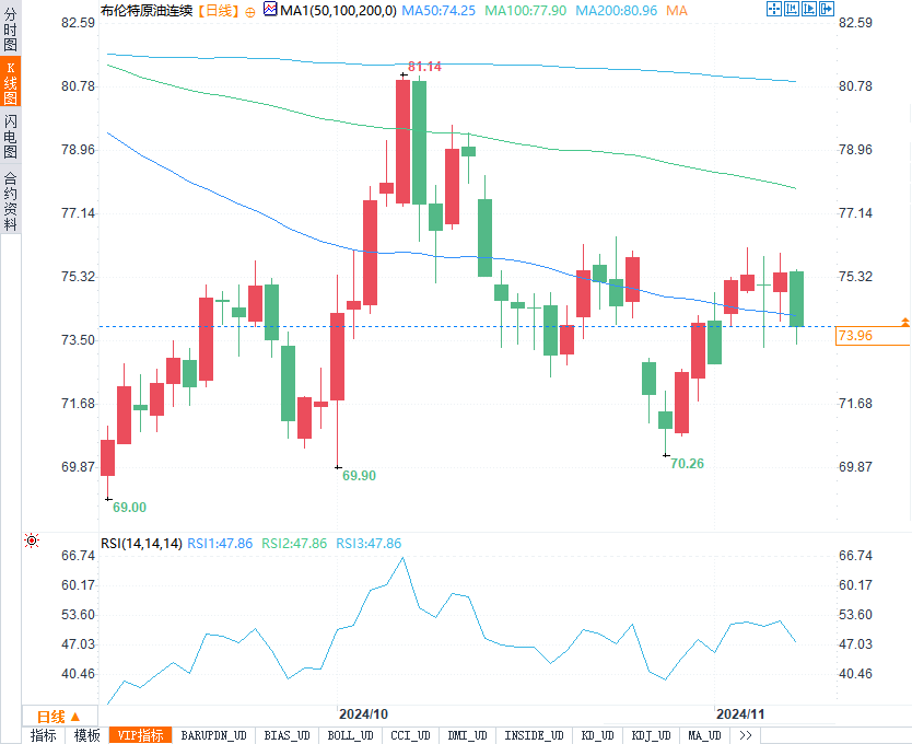 布伦特原油期货收报73.87美元/桶,跌幅2.3%。本周初期,飓风拉斐尔带来的威胁推高了油价。然而,随着气象预测对风暴轨迹和强度的预估降低,市场对该飓风可能造成的供应中断威胁逐渐消退,油价出现回落。