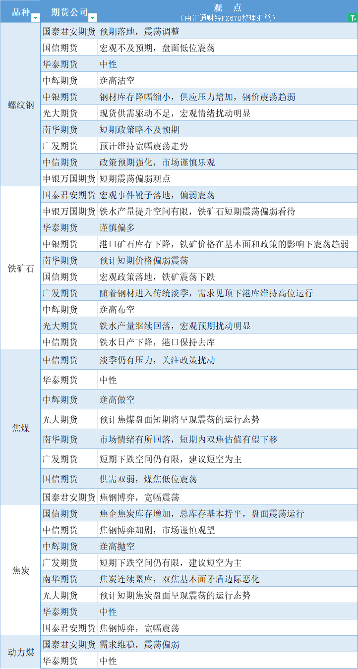 期货公司观点汇总一张图:11月11日黑色系(螺纹钢、焦煤、焦炭、铁矿石、动力煤等)