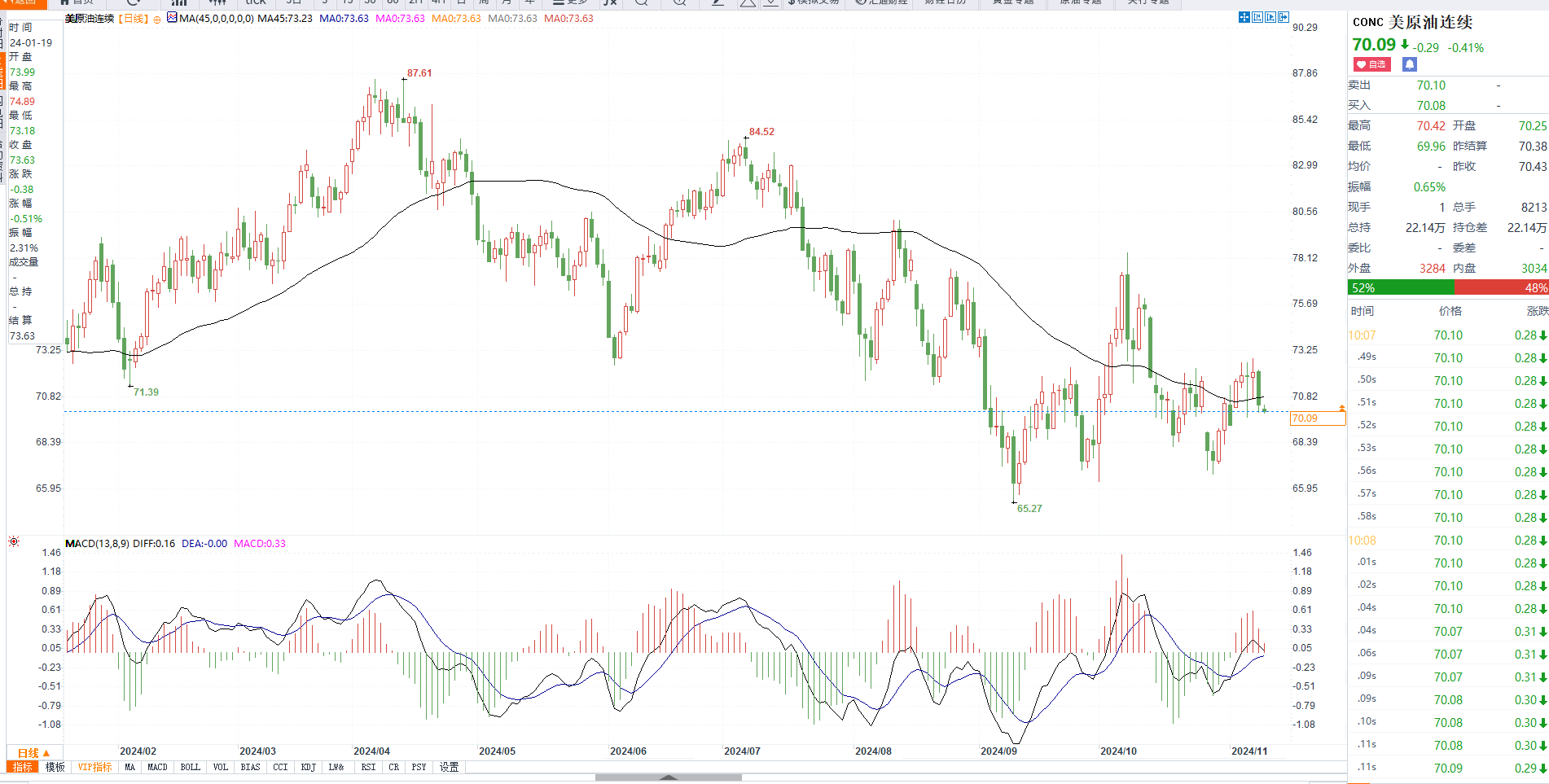 美原油,叠加全球需求预期尚未出现回暖迹象,多重共振之下,油价维持箱体震荡。
