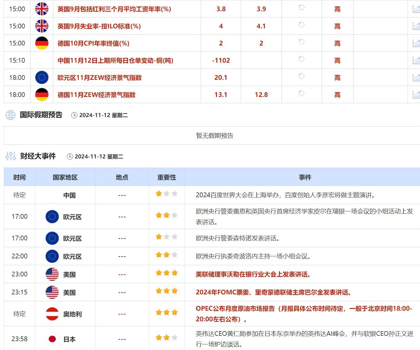 今日重点数据和大事件