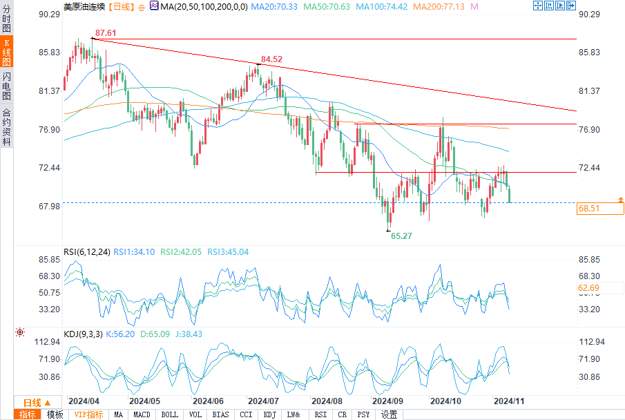 汇通财经APP讯——周一(11月11日)欧盘时段,WTI油价大幅下挫。盘中报68.72美元每桶,跌幅2.36%。