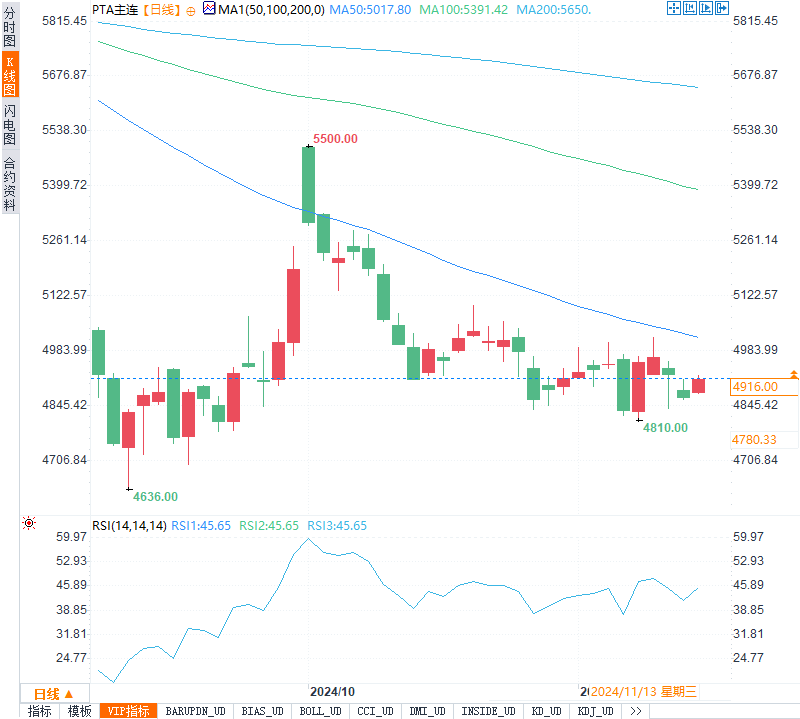 PTA市场在供应端增加和需求端放缓的共同作用下,价格压力明显。尽管上游原油价格波动为成本带来一定支撑,但纺织需求放缓、终端采购积极性不高,使得PTA市场承压。短期内PTA价格或将延续偏弱走势,关注下游开工率的恢复情况和库存消化进度,以研判未来市场方向。