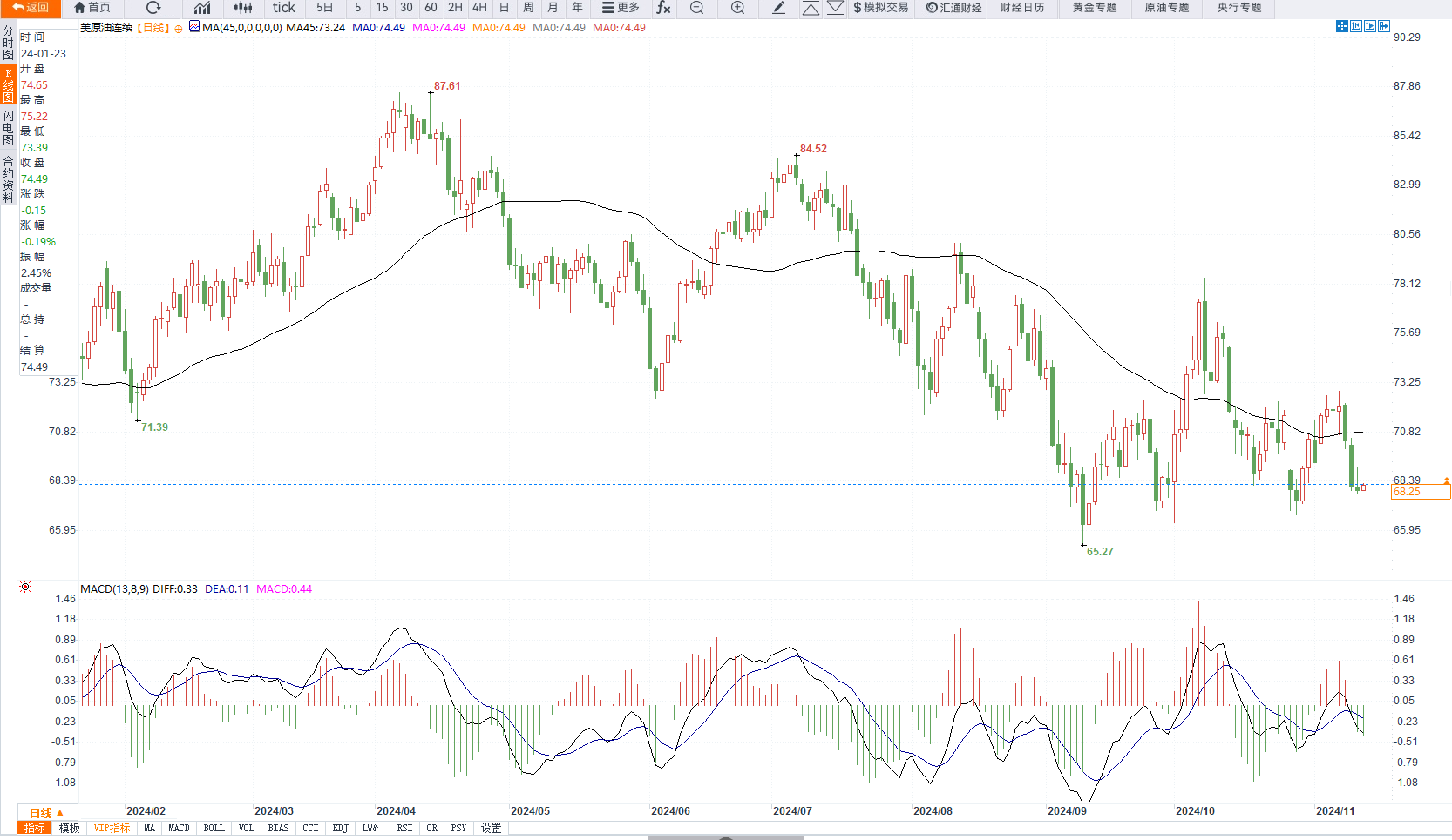 由于周一欧美老兵节休市,本周EIA库存数据延后以日,将于周四(11月13日)北京时间23:00公布。