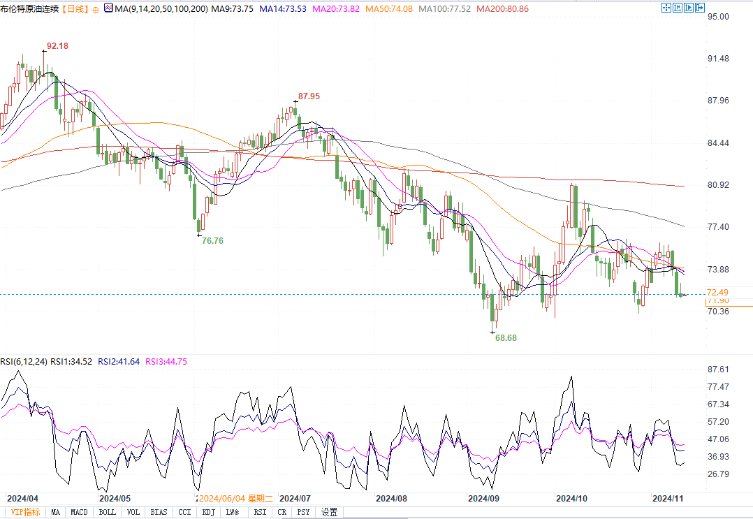 布伦特原油日线图