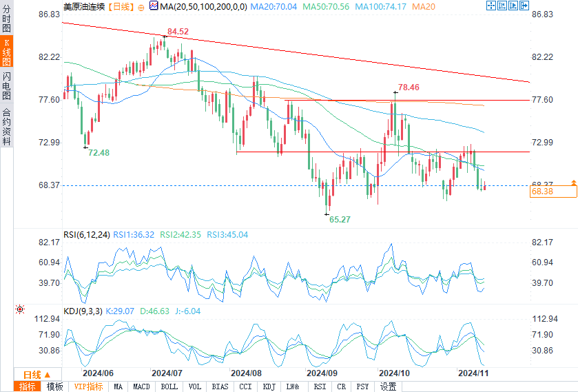 原油价格无法获得喘息的机会,仍然面临着巨大的抛售压力。油价总体趋势是长期下滑。