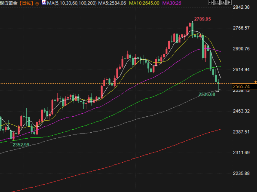 现货金跌0.1%,至每盎司2570.05美元,触及9月12日以来最低水平。美国期金收低0.5%,报2572.90美元。