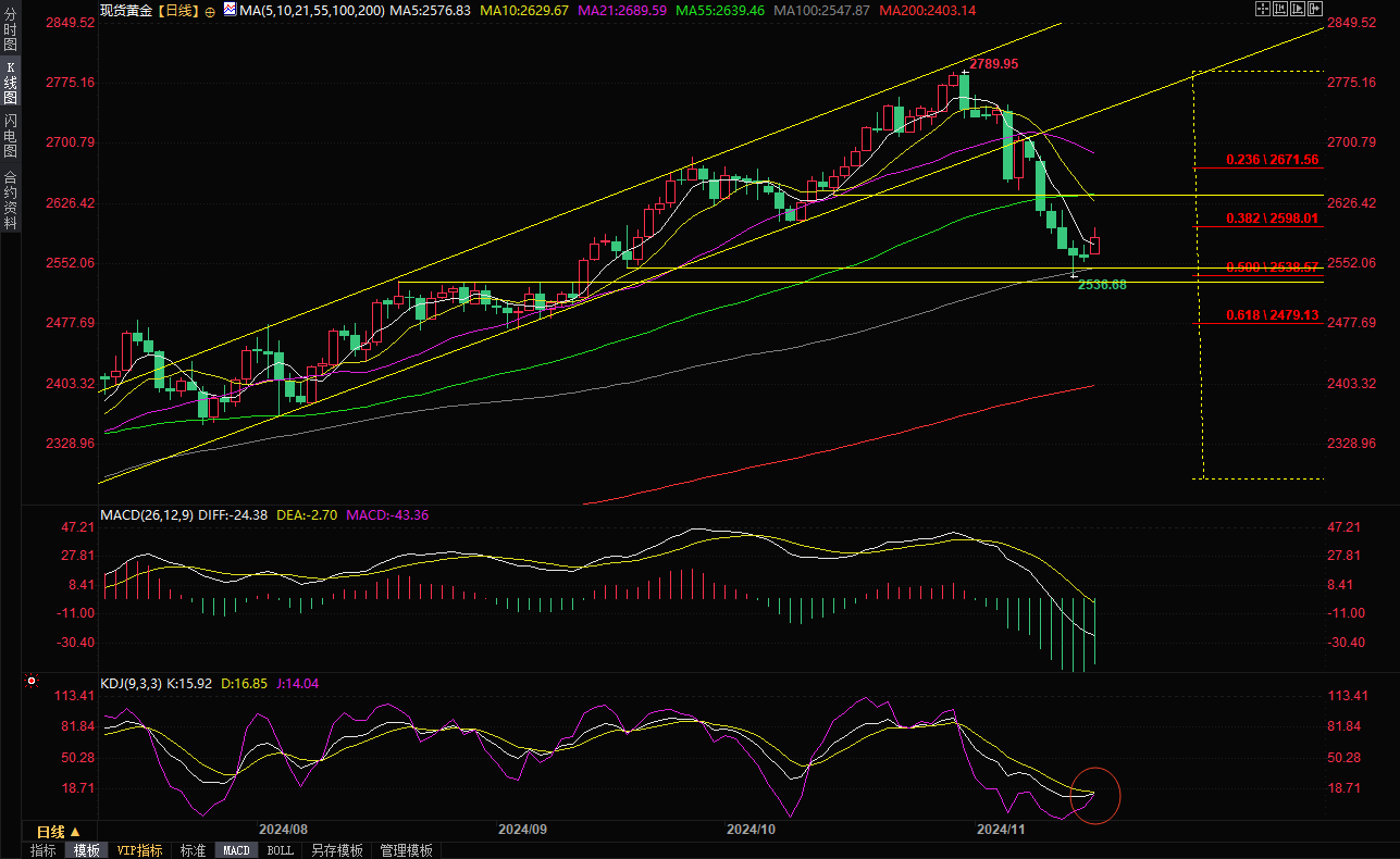 美元指数一度刷新逾一年高点至107.07附近,这令金价上周一度跌至2536.68美元/盎司附近。但“利空出尽就是利好”,在上周四美国初请失业金数据靓丽表现和美联储主席鲍威尔讲话后,金价却并没有进一步下探,暗示金价短线下跌动能衰减。