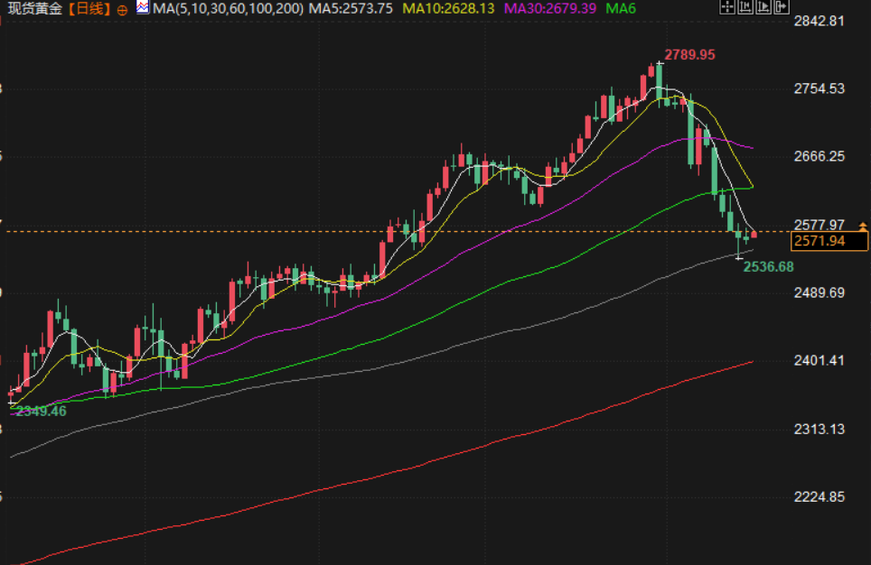 金价上周五小跌,创下三年多来的最大单周跌幅,因美联储降息预期降温提振了美元,削弱了投资者对黄金的兴致。现货金下跌0.1%,至每盎司2565.49美元。上周,金价下跌超过4%,上周四触及9月12日以来的最低点。美国期金 收低0.1%,报2570.10美元。美元创下一个多月以来的最大单周涨幅,这使得黄金对其他货币持有者而言更加昂贵。与此同时,美国公债收益率在数据显示全球最大经济体上月零售销售增幅超过预期后扩大涨幅。