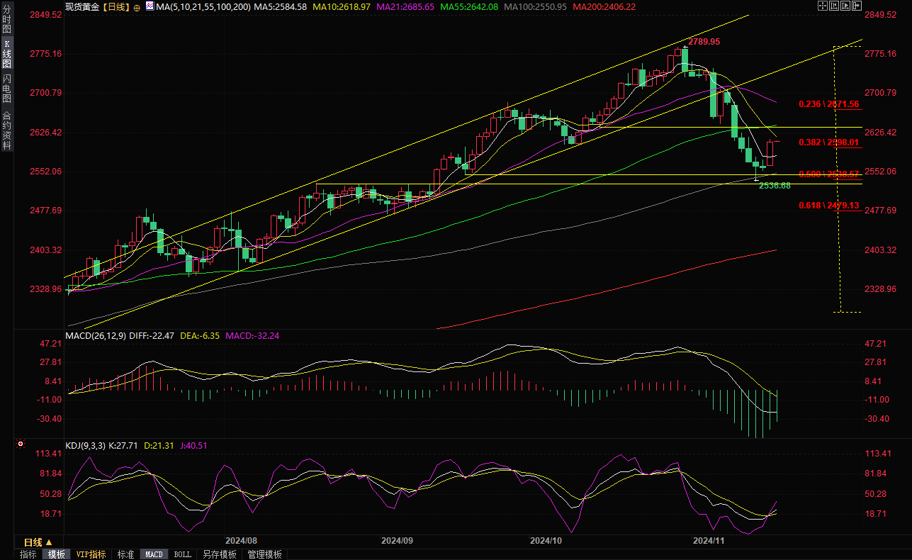 技术面来看,若金价能够站稳在2600关口上方,短线有望进一步试探55日均线2642.07附近阻力。