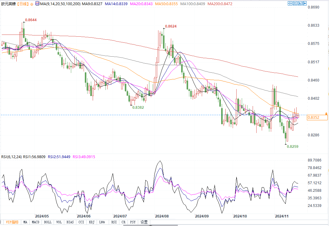 北京时间11月20日9:50,欧元兑英镑0.8351/53