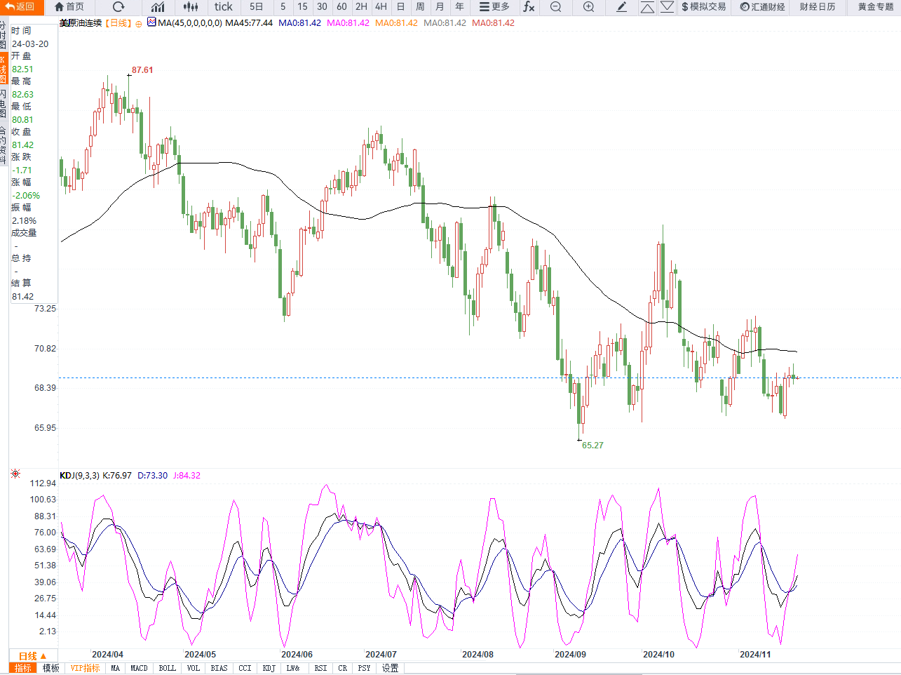 美国至11月15日当周原油出口量为2024年9月13日当周以来最高。美国至11月15日当周国内原油产量为2024年9月20日当周以来最低。