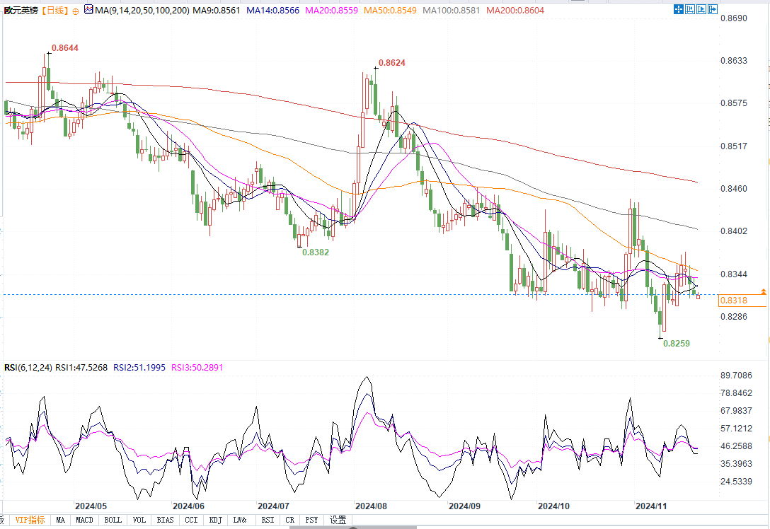 北京时间11月22日9:17,欧元兑英镑报0.8313/20