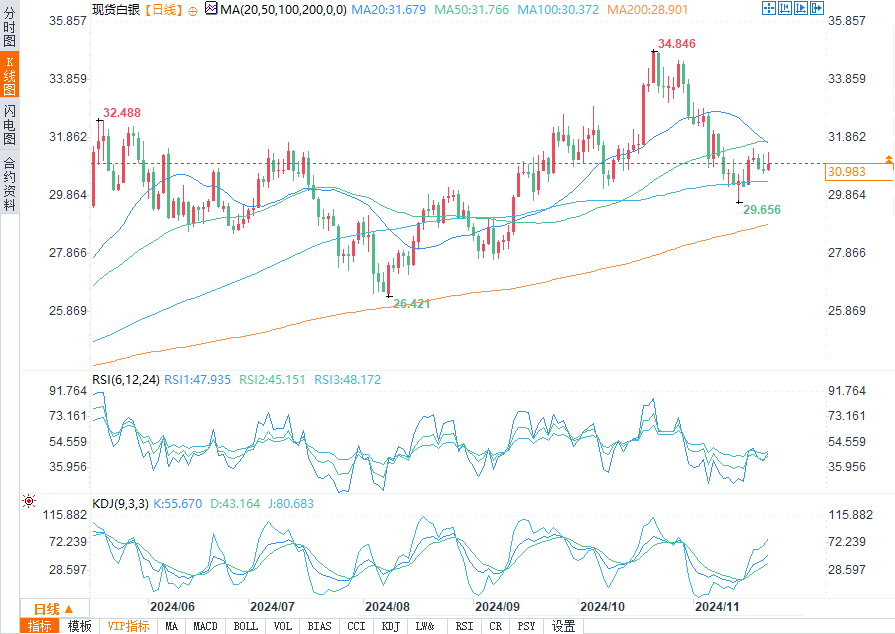 现货白银报30.976美元/盎司,涨幅0.67%。