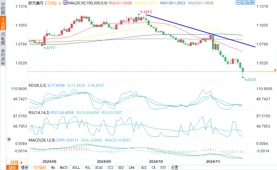 欧元/美元延续跌势,继前一日跌破1.0500的心理支撑后,周五跌至1.0400下方的两年新低。