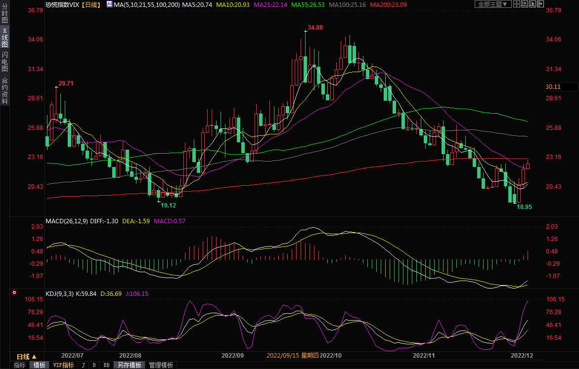 CBOE波动性指数收于22.68,为11月18日以来最高收位。