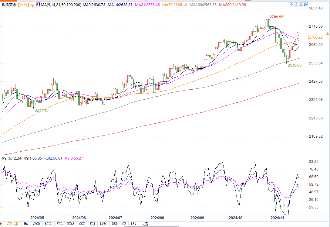 现货黄金报2697.43美元/盎司