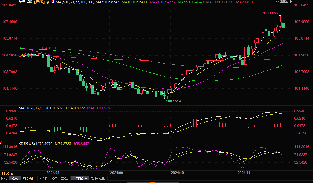 美元指数上周五曾触及两年高点 108.09。