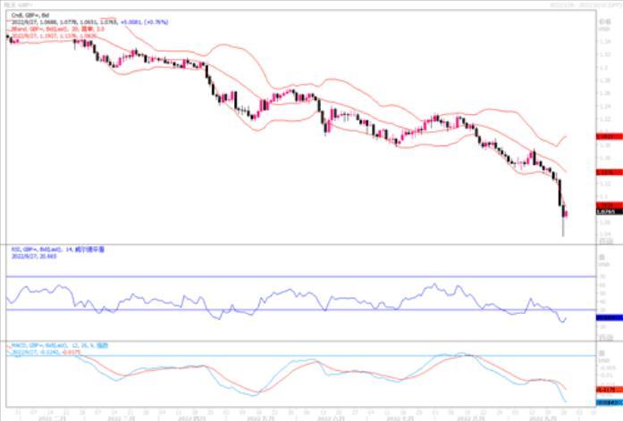 英镑兑美元暴跌多达5%,触及1.0327美元,为历史上最弱,之后在欧洲交易中收复了当天的大部分跌幅。因为投资者担心英国的新经济计划将损害该国财政状况,而英国央行表示,在资产价格大幅波动之后,正“非常密切地”关注金融市场。市场的反应表明,投资者已经对政府的做法失去了信心,造成了一定程度的波动,使英镑沦为与一些新兴市场货币为伍的境地。现在看来,英国央行很可能被迫在即将召开的11月会议上大幅加息。届时看看能否阻遏住英镑大幅走跌的弱势格局。纯从技术角度来看,