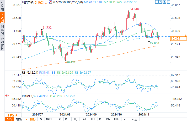 地缘政治缓和削弱避险需求在以色列和真主党可能进行停火谈判的消息传出后,白银作为避险资产的吸引力减弱。这缓解了地缘政治担忧,对黄金市场产生了广泛影响。与此同时,受当选总统特朗普(Donald Trump)可能倾向于支持企业的影响,市场人气依然好坏参半。特朗普已提名对冲基金高管贝森特(Scott Bessent)担任财政部长。贝森特预期的政策,如关税调整和放松管制措施,可能会减少对通货膨胀的担忧,从而增加市场对美联储货币政策决定的不确定性。