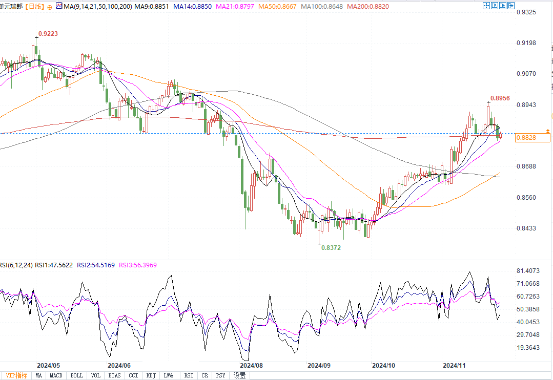 美元兑瑞郎日线图