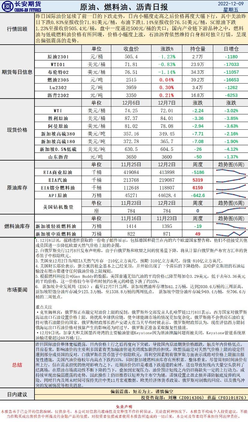 12月9日,长安期货发布原油早评,认为原油将偏弱震荡,短差为主,谨慎偏空。