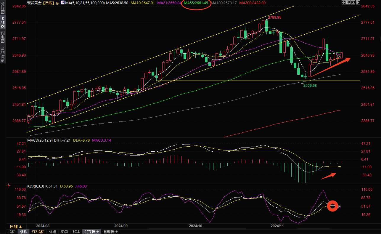 技术面来看,金价本周一大跌后一直处于反弹调整修正走势,MACD粘合后初步翻红,短线留意55日均线2661.44附近阻力,如果能站稳在该位置上方,则增加后市看涨信号,进一步阻力参考2680关口和;有望KDJ死叉运行,如果不能顶破55日均线附近阻力,则需要提防金价重回跌势的可能性。