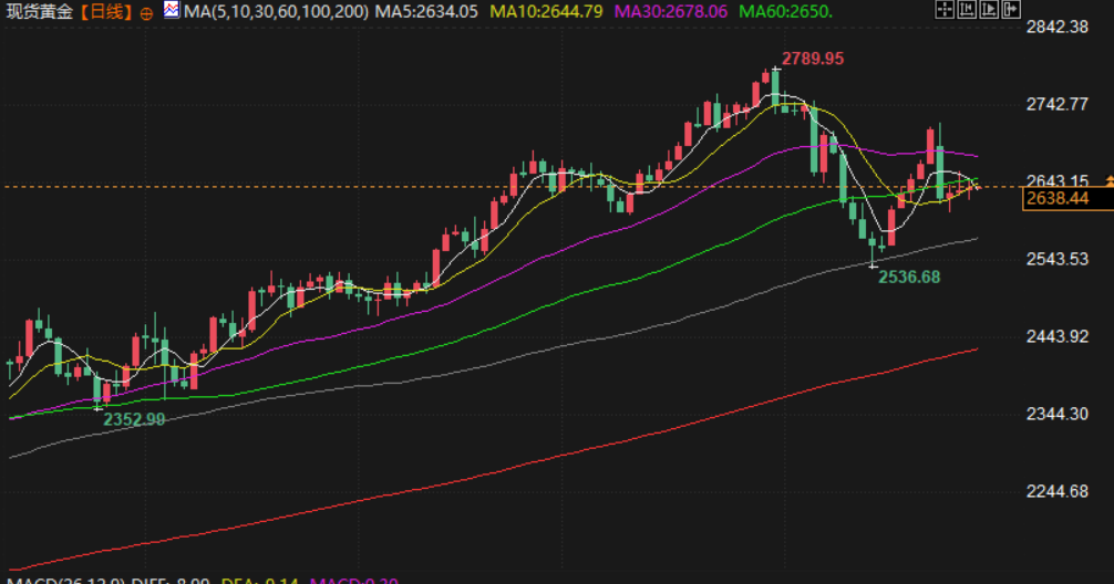 现货黄金交投于2638.60附近,地缘政治不确定性和贸易担忧提振避险需求支撑金价,