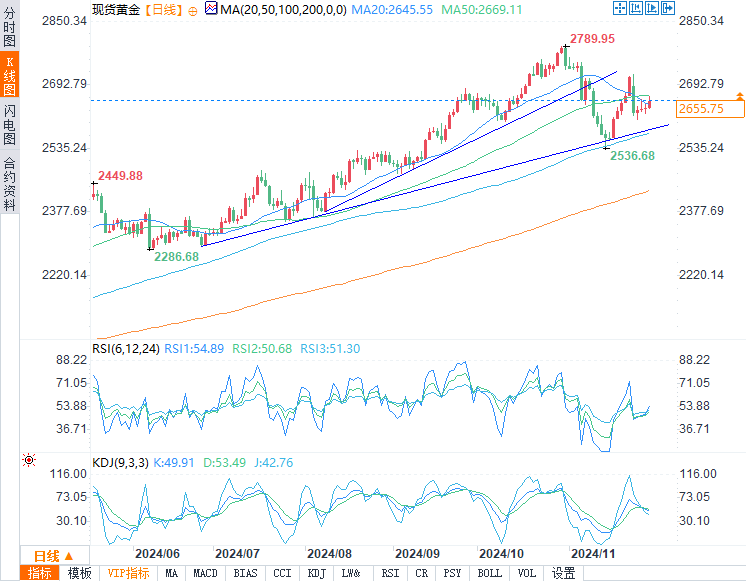 现货黄金报2655.32美元/盎司,涨幅0.67%。