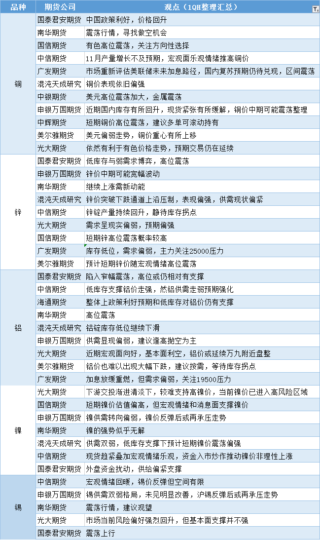 标题:期货公司观点汇总一张图:12月9日有色系(铜、锌、铝、镍、锡等)
