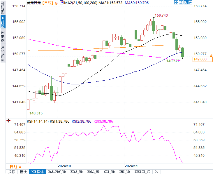 美元指数下滑至105.9182,为两周低点,推动黄金小幅回升。市场对特朗普即将上任后的高关税与财政刺激政策的担忧,以及避险情绪的重新升温,可能继续为贵金属提供支撑。此外,全球债市收益率下降,以及地缘政治局势潜在的不确定性,或进一步支撑黄金在年底前的表现。